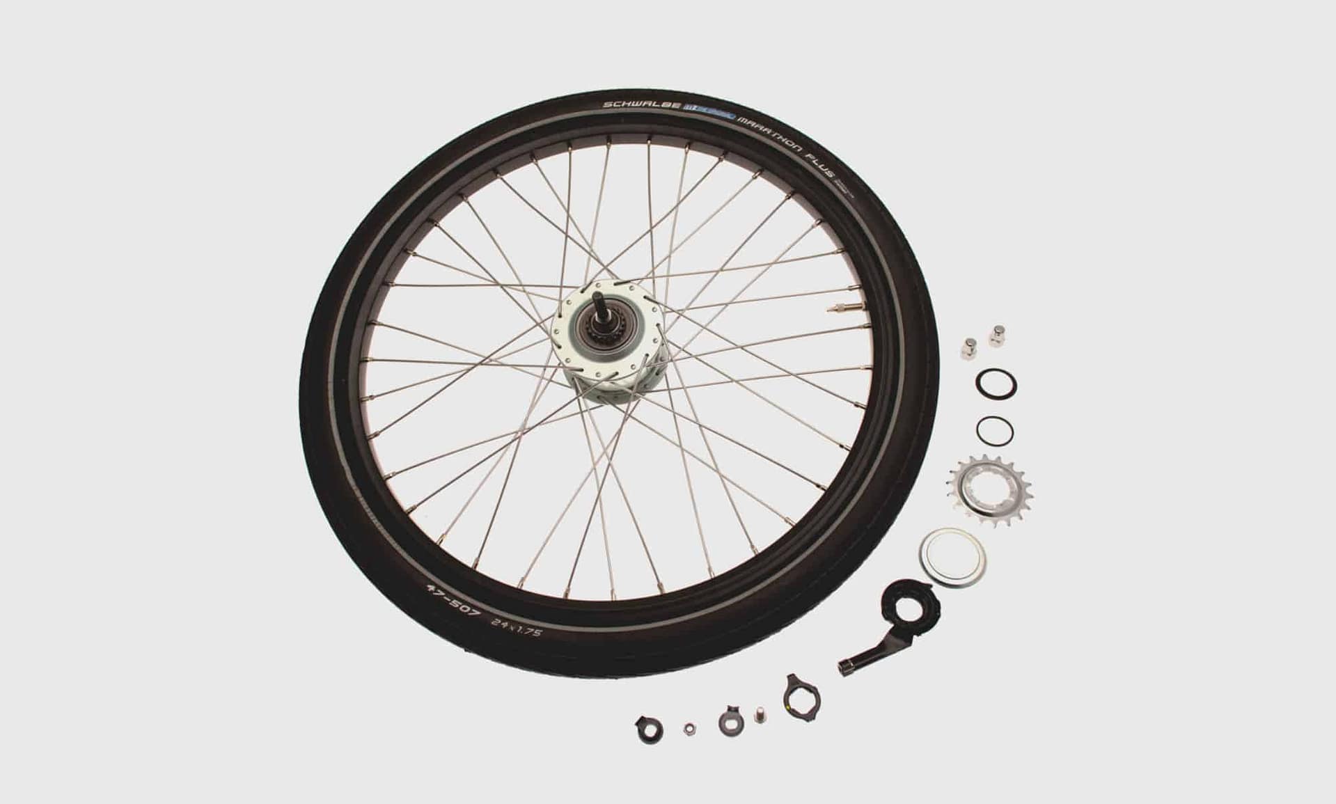 Rear wheel 24″ 8 speed for rollerbrake, incl. components, single wall, w/ tire